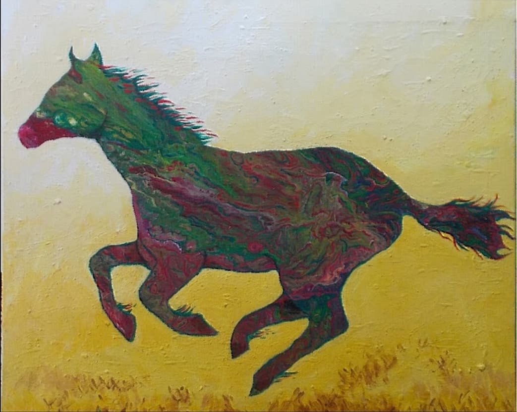 CABALLO II - acrílico fluido & estarcido - 60 x 90 cm
